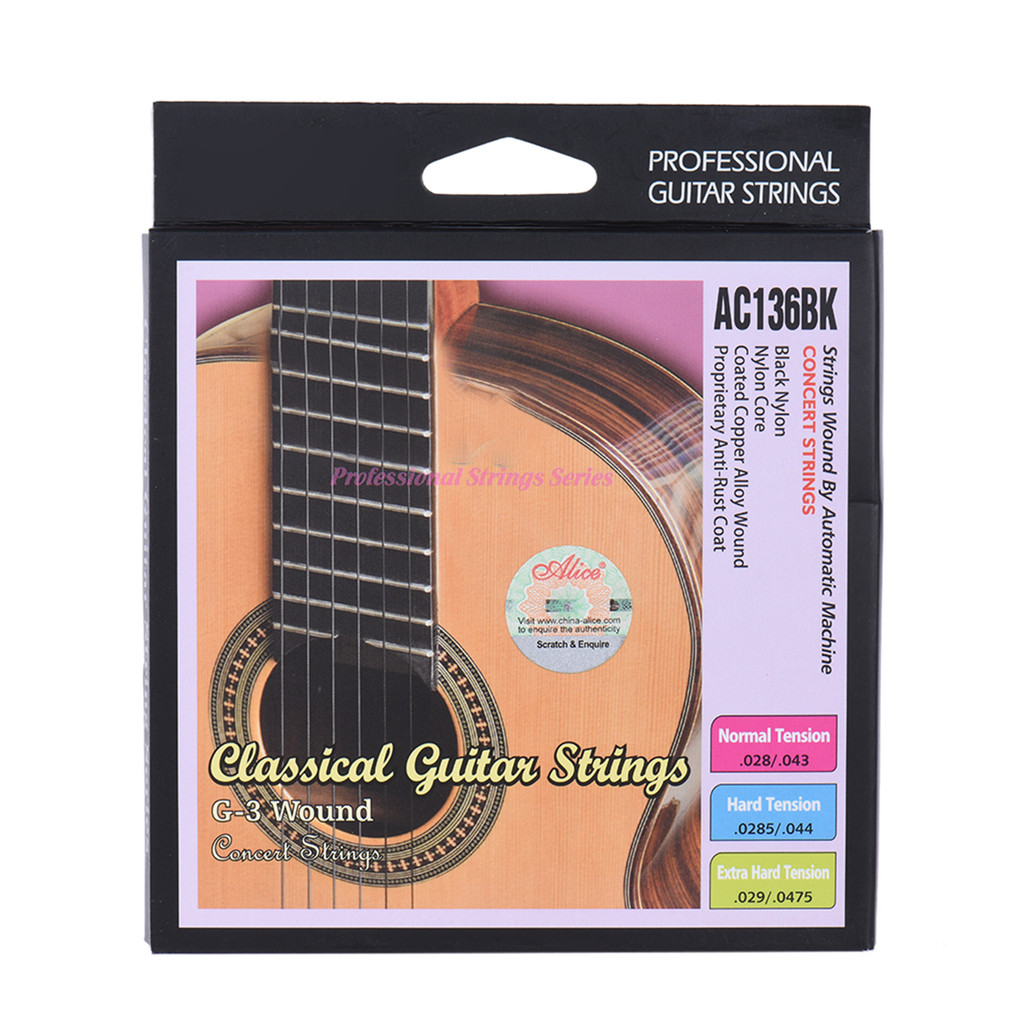 [Navio Rápido] Alice AC136BK-H Cordas De Guitarra Clássica De Nylon Preto 6 Unidades/Conjunto (0,0285-0,044) Tensão Dura