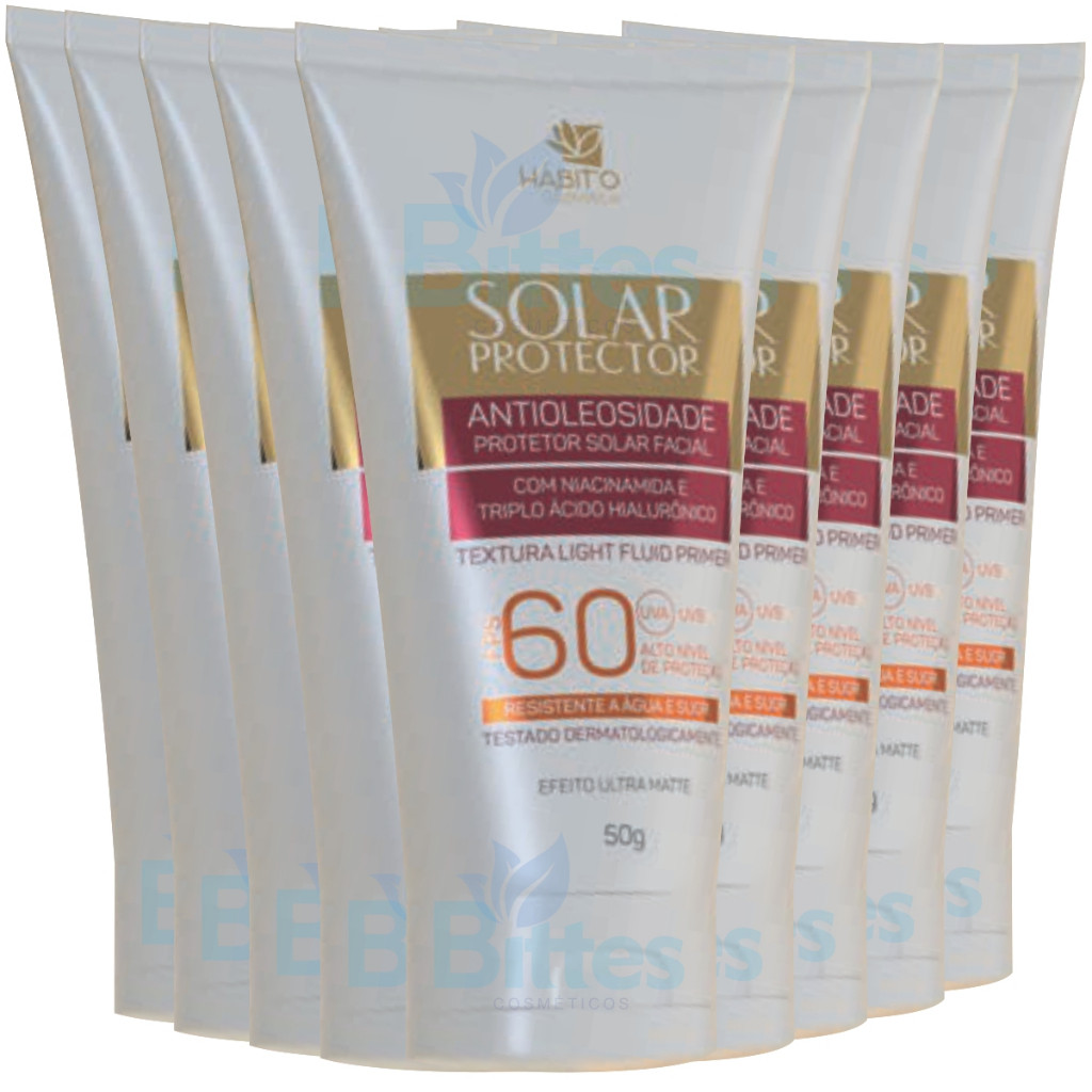 10 Protetor solar 60 fps Hábito Cosméticos uva uvb pele facial efeito Matte