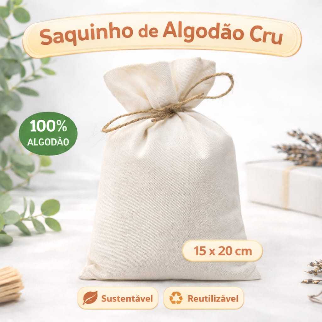 50 Saquinhos 10x15 Algodão cru com fechamento duplo em cordão trançado.