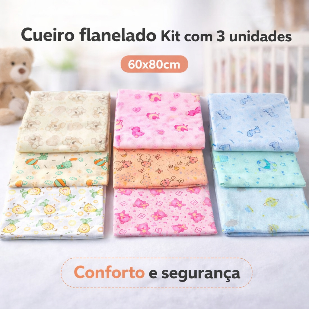 Cueiro Flanelado Bebê 100% Algodão Kit 3 Unidades 60x80cm Envio Imediato