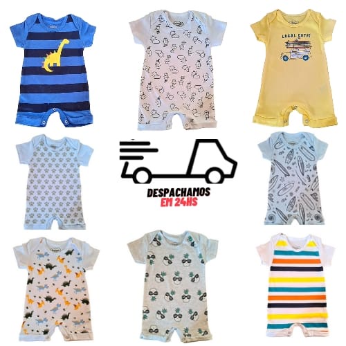 Macacão Romper Verão Bebê Curto 100% Algodão - Macacão Bebê Curto - Roupa de Bebê Menino - Body Menino - Enxoval de Bebê - Roupa Barata Bebê