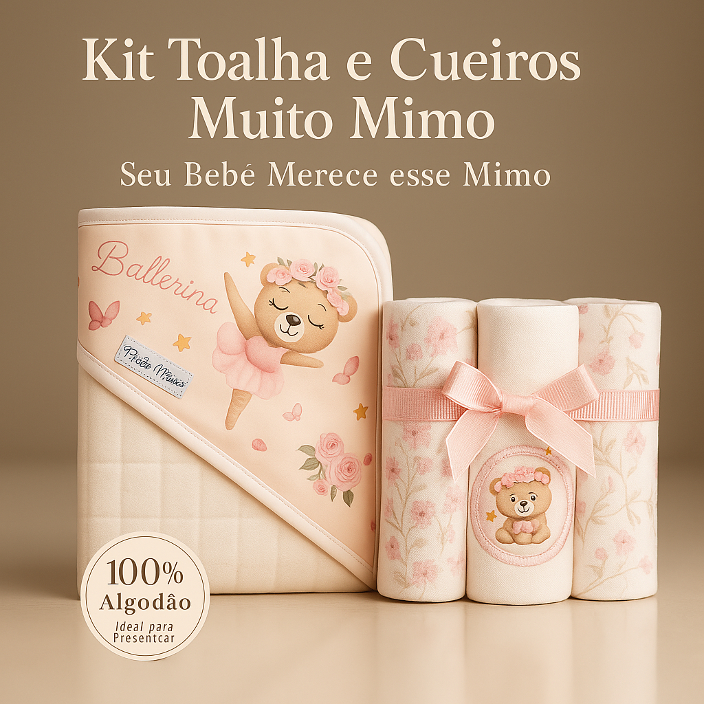 Toalha com Capuz + 3 Cueiros Flanelados Bebê 100% Algodão Macio Enxoval Completo Envio Imediato