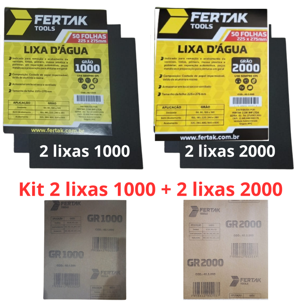 Lixa 1000 + 2000 Kit 2 Folhas de cada Grão D'água Farol Polimento Lixamento Acabamento Superfície