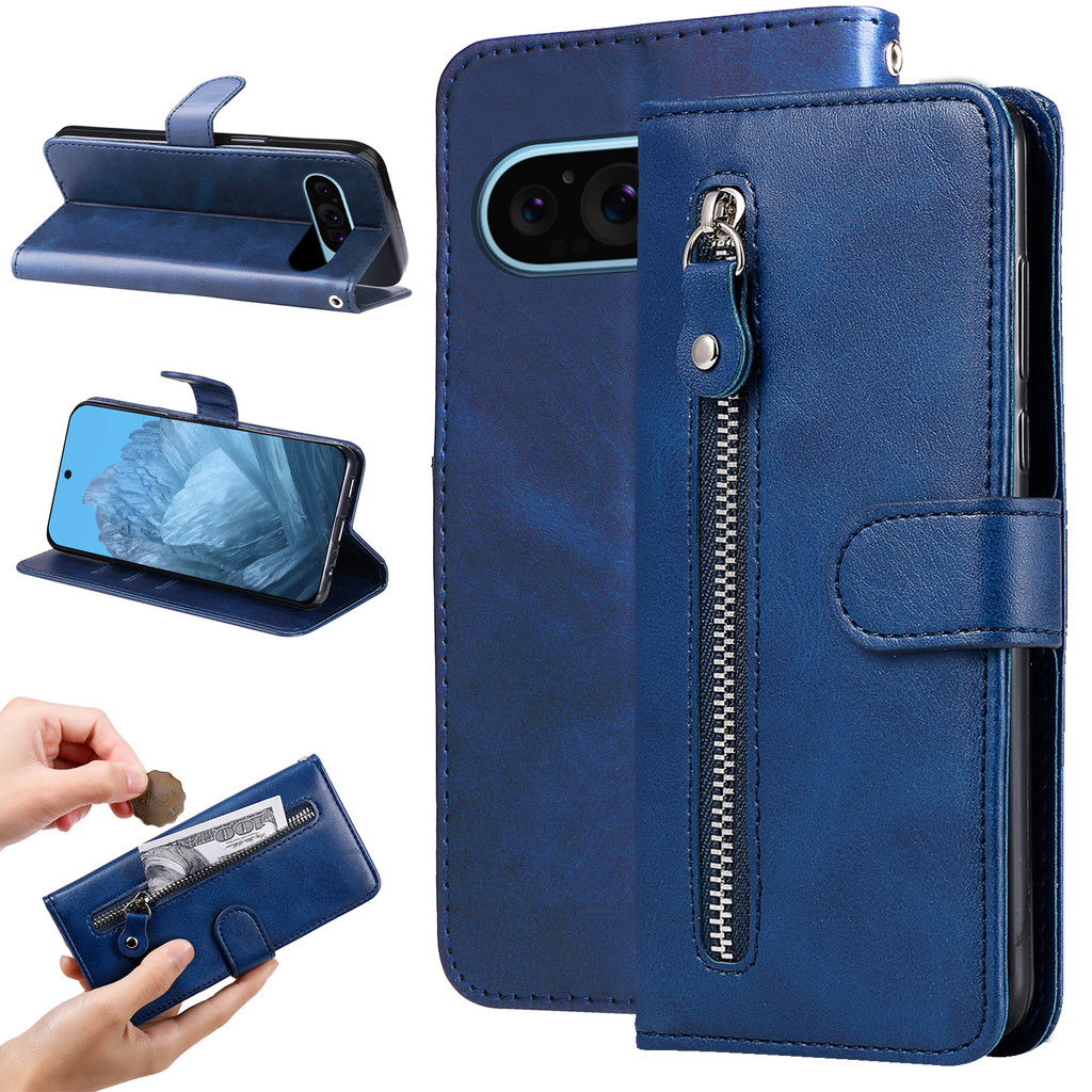Capa Carteira Com Zíper Para Google Pixel 9 10 Pro XL 10A 9A 8 7 8A 7A 6 Flip De Couro PU Multi Compartimentos Cartão Su