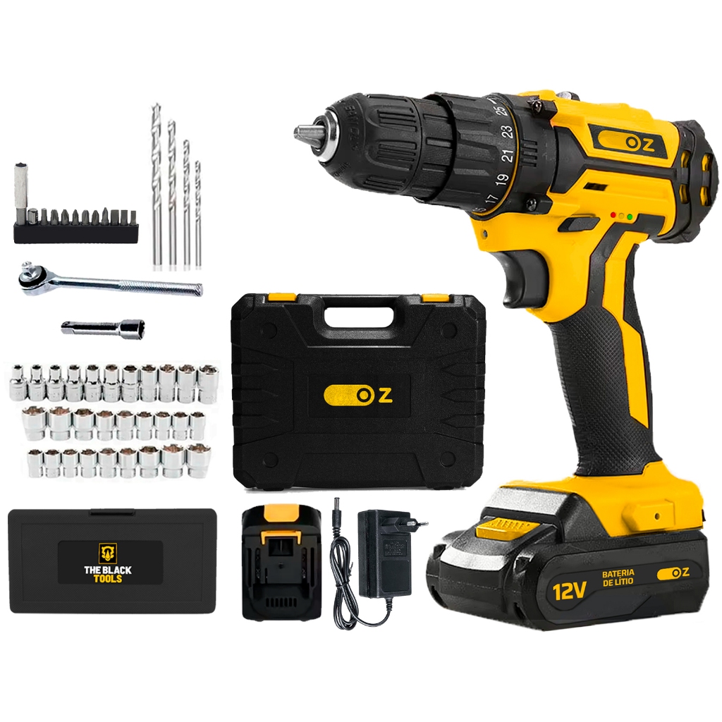 Parafusadeira Furadeira Sem Fio A Bateria Lítio 12v P/ Madeira Metal Oz Com Jogo De Soquetes 40 Pçs