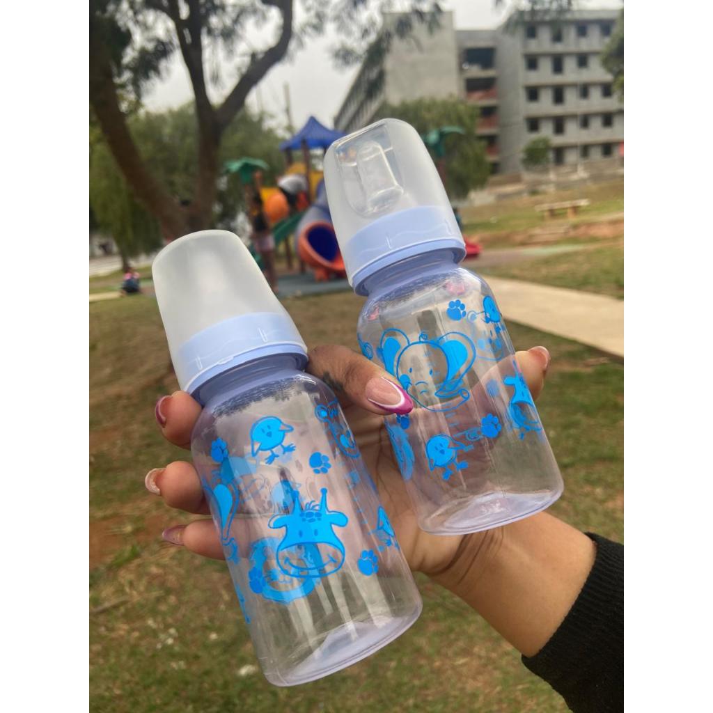 Kit Com 2 Mamadeiras Bebê 140ml Azul - Bico Suave de Silicone