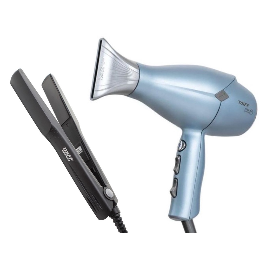 Kit Taiff - Secador Profissional Fox 3 Kompress Blue 2200w 220v + Prancha Ceramic 180ºc Bv