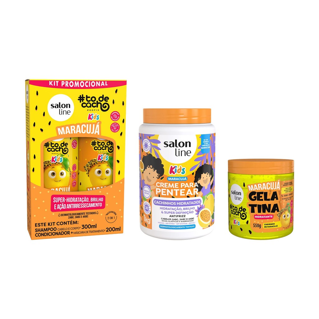 Kit Shampoo + Condicionador + Creme de Pentear 1KG e Gelatina 550g Maracujá