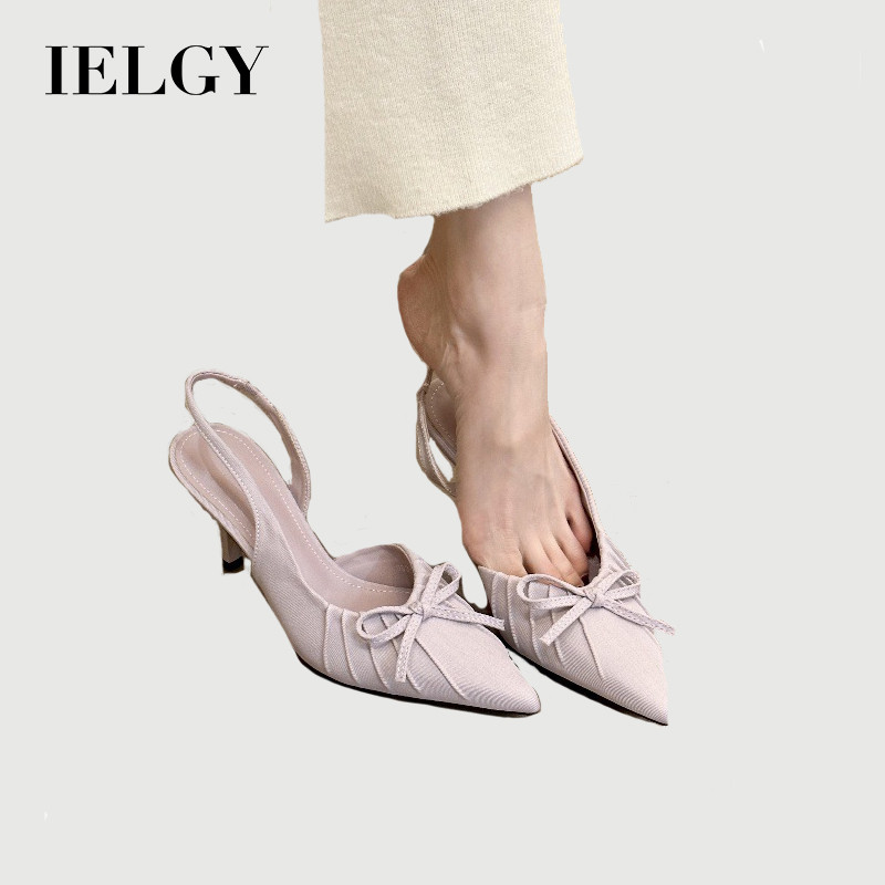 IELGY 2025 Salto Alto Suave Temperamento Roxo Dedo Apontado Babados Sandálias Vazias Femininas Primavera