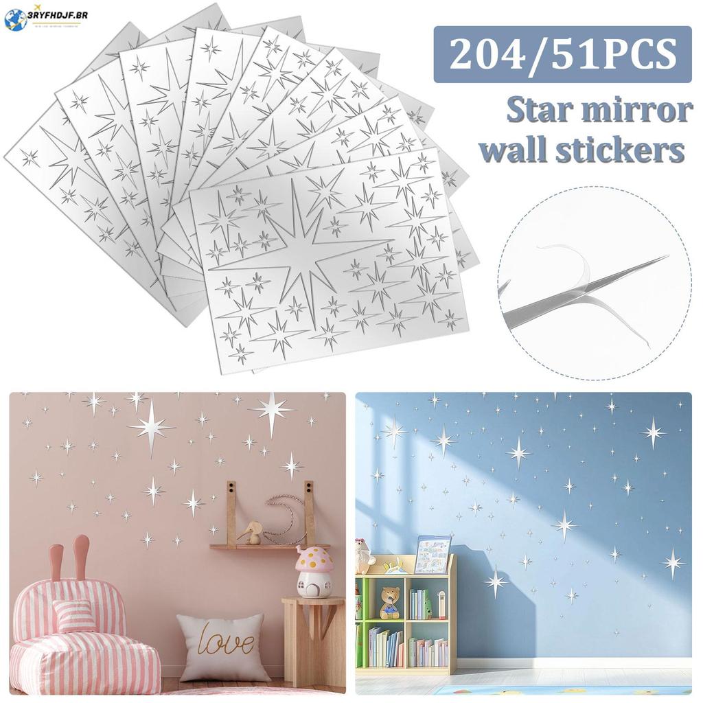 204 Pçs Espelho Adesivos Estrela Decalques De Parede Decoração Removível Auto Adesivo Para Teto Casa SHOPSKC0645