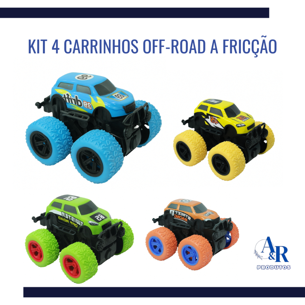 Kit 4 Miniatura Carrinho Monster Pick Up Bigfoot Fricção Cambalhota 360°