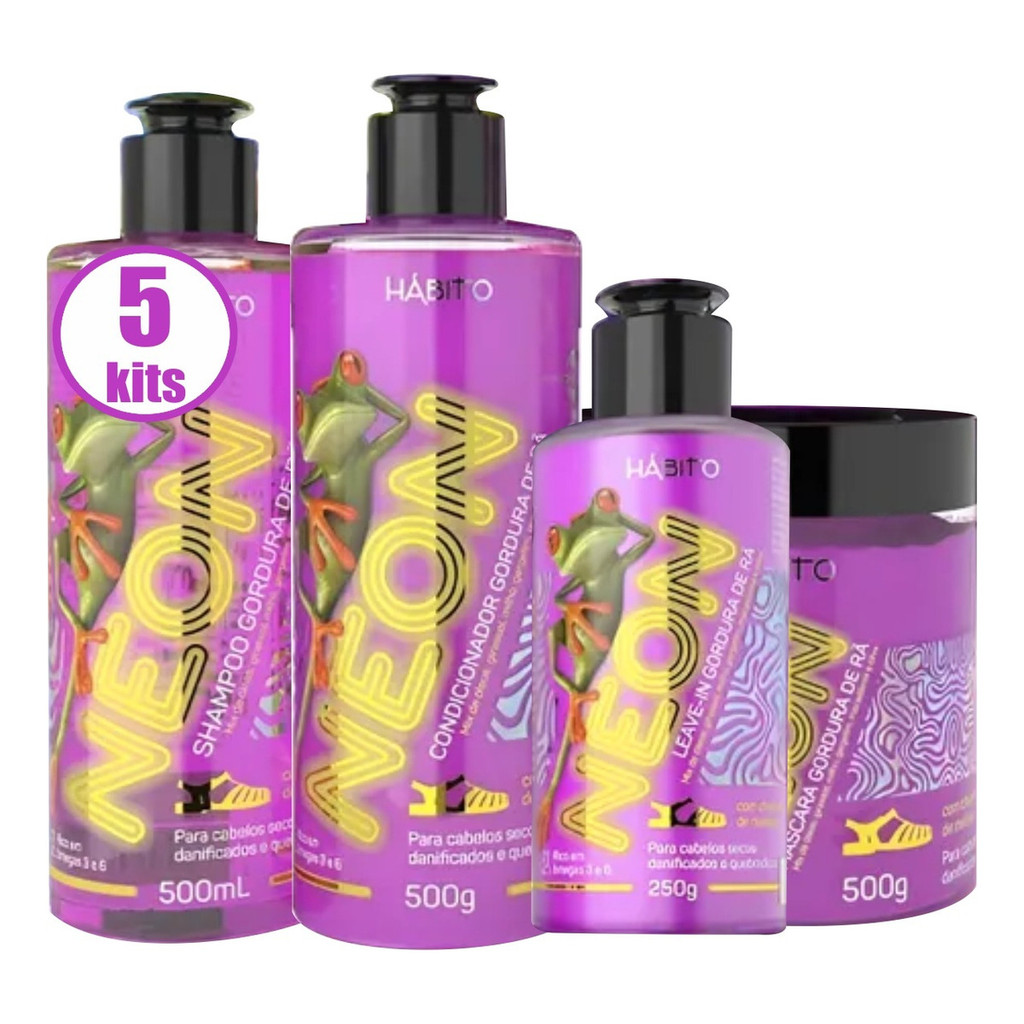 5 Kit Gordura De Rã Neon Hábito Cosméticos Capilar Atacado