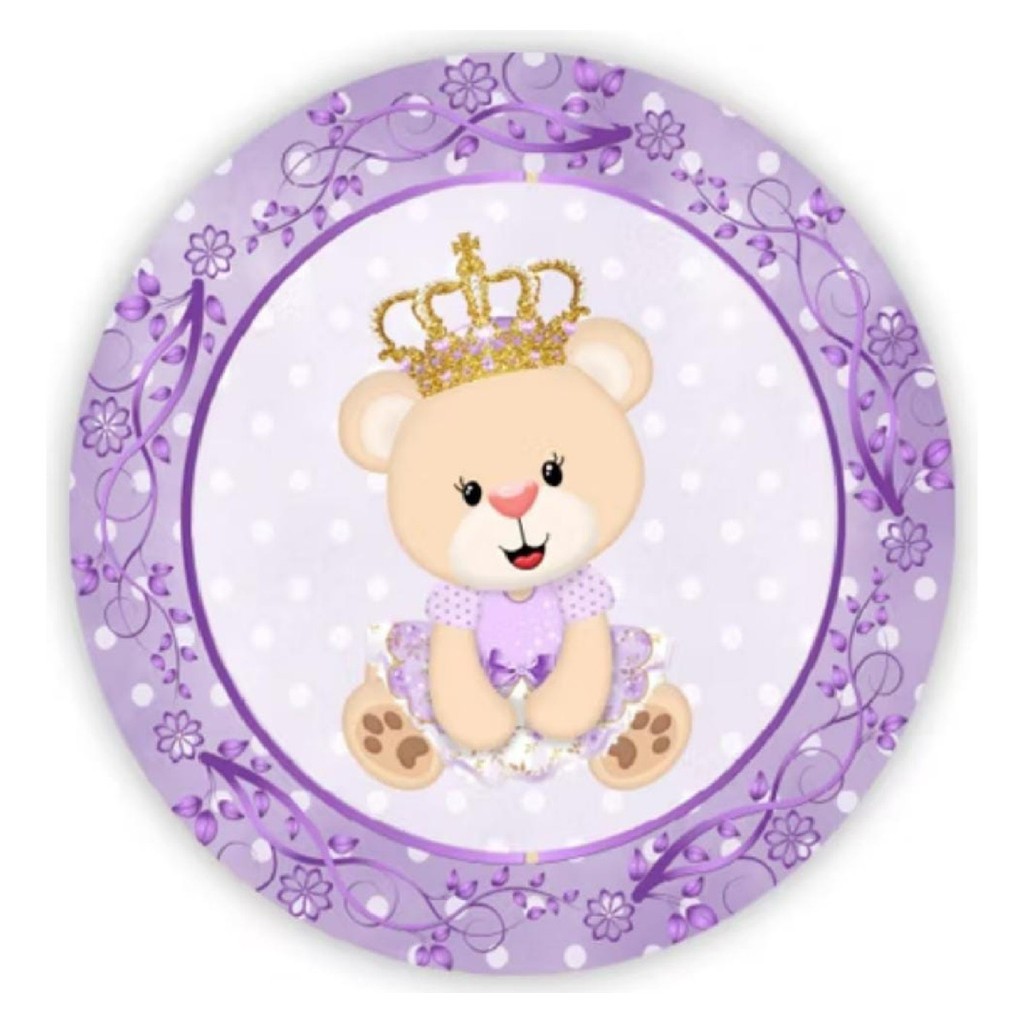 Capa Painel Festa 1,50x1,50 Redondo Sublimado Tema Ursinho Realeza
