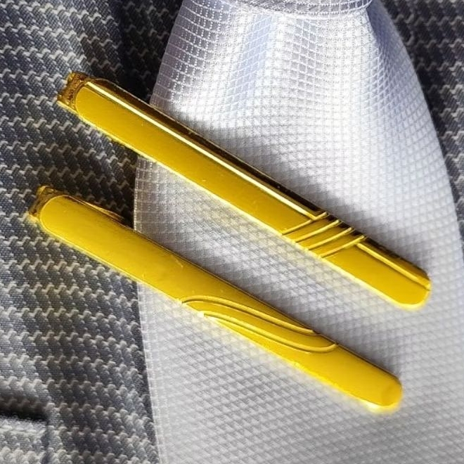 KIT 2 PRENDEDORES PRESILHA DE GRAVATA 6CM KIT C/ 2 UNIDADES DOURADOS INOXIDÁVEIS