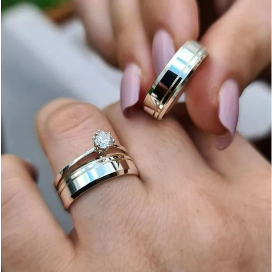 Aliança de namoro prata banhado 925 6mm lisa friso + Solitário (COD-504)