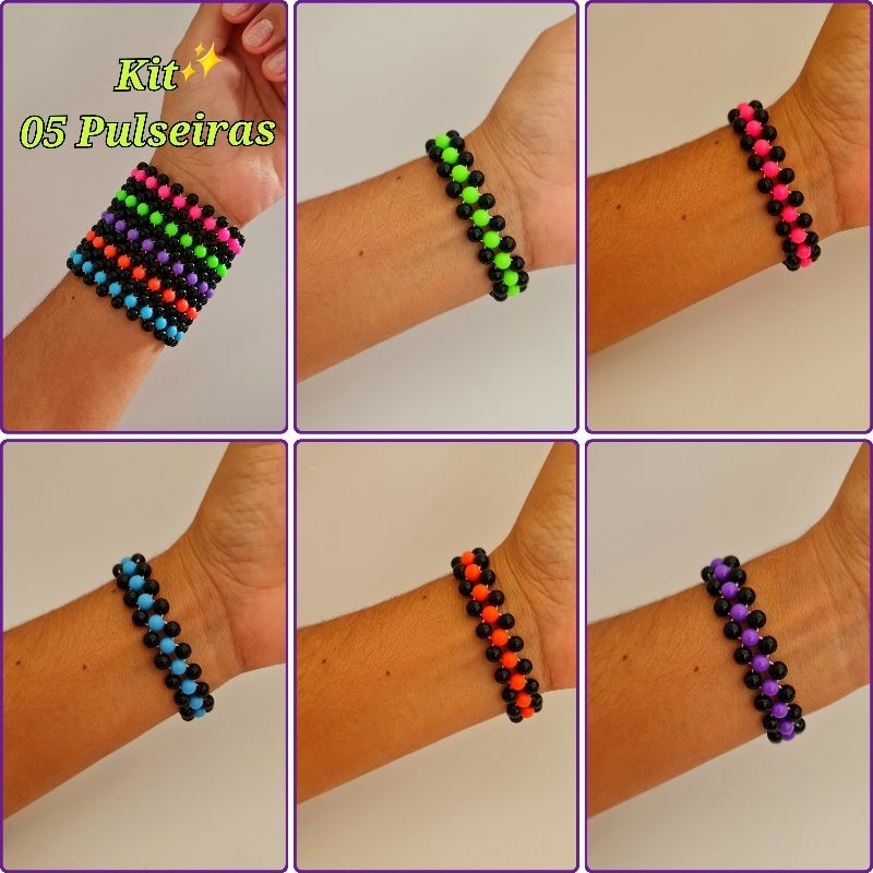 Kit 05 Pulseira de Pérola Entrelaçada/Cruzada Coloridas–Fio Elástico | Pérolas 0.6mm Trançada Scene / Lolita Acessórios