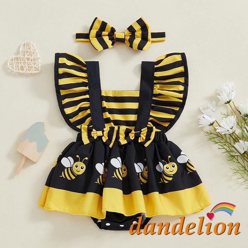 Macacão Para Bebês Meninas Com Faixa De Cabeça Abelha/Joaninha/Vaca/Elefante Estampa Manga Voadora Roupas De Verão