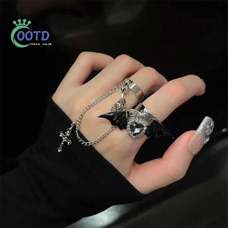 Moda Hoje Y2K Gótico Nervoso E Bonito Demônio Asa Cruz Anel Ajustável Acessórios De Feminina .