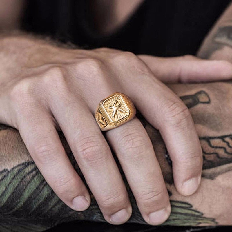 Vnox Anel De Sinete De Águia Americana De Animais Para Homens De Aço Inoxidável Dourado Masculino