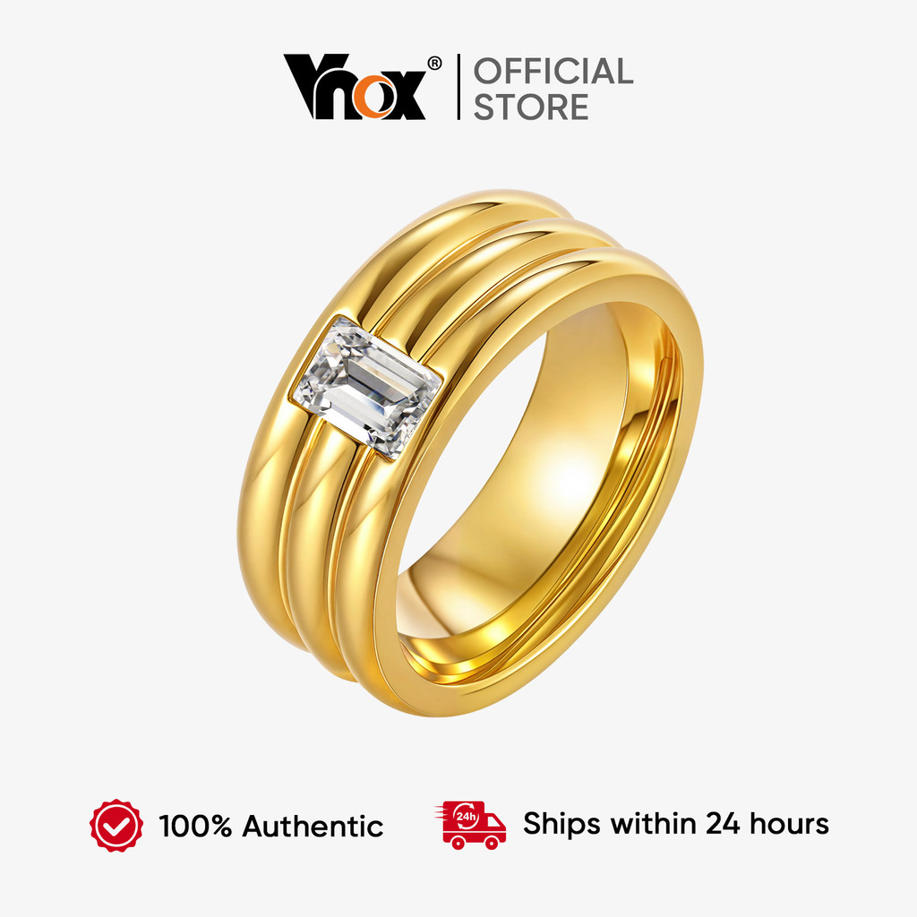 Anel Robusto Cúbico De Zircônia Vnox Para Mulheres E Homens , Hipoalergênico De Aço Inoxidável Dourado , Presente De Joi