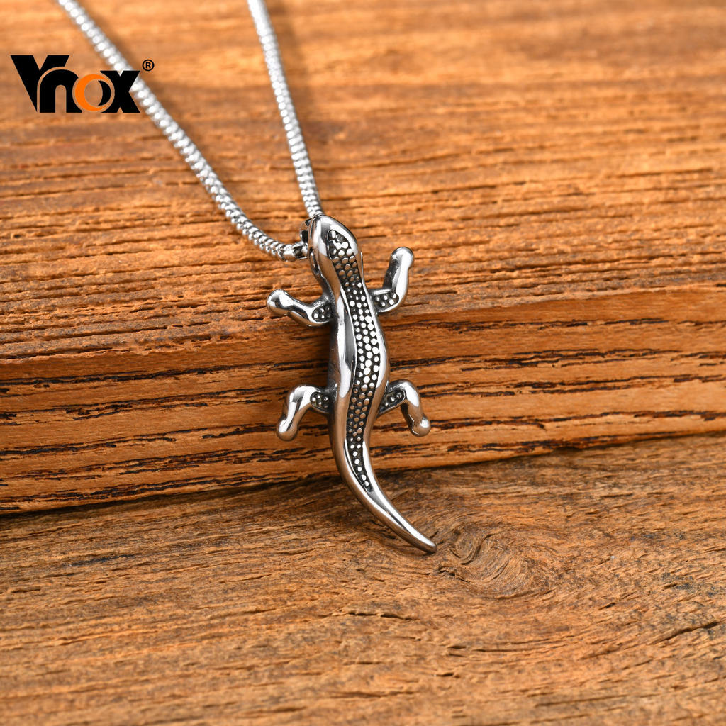 Vnox Gecko Lagarto Animal Pingente Colares Corrente Para Homem , Punk Hip Hop Único Aço Inoxidável Jóias Criatividade Pr