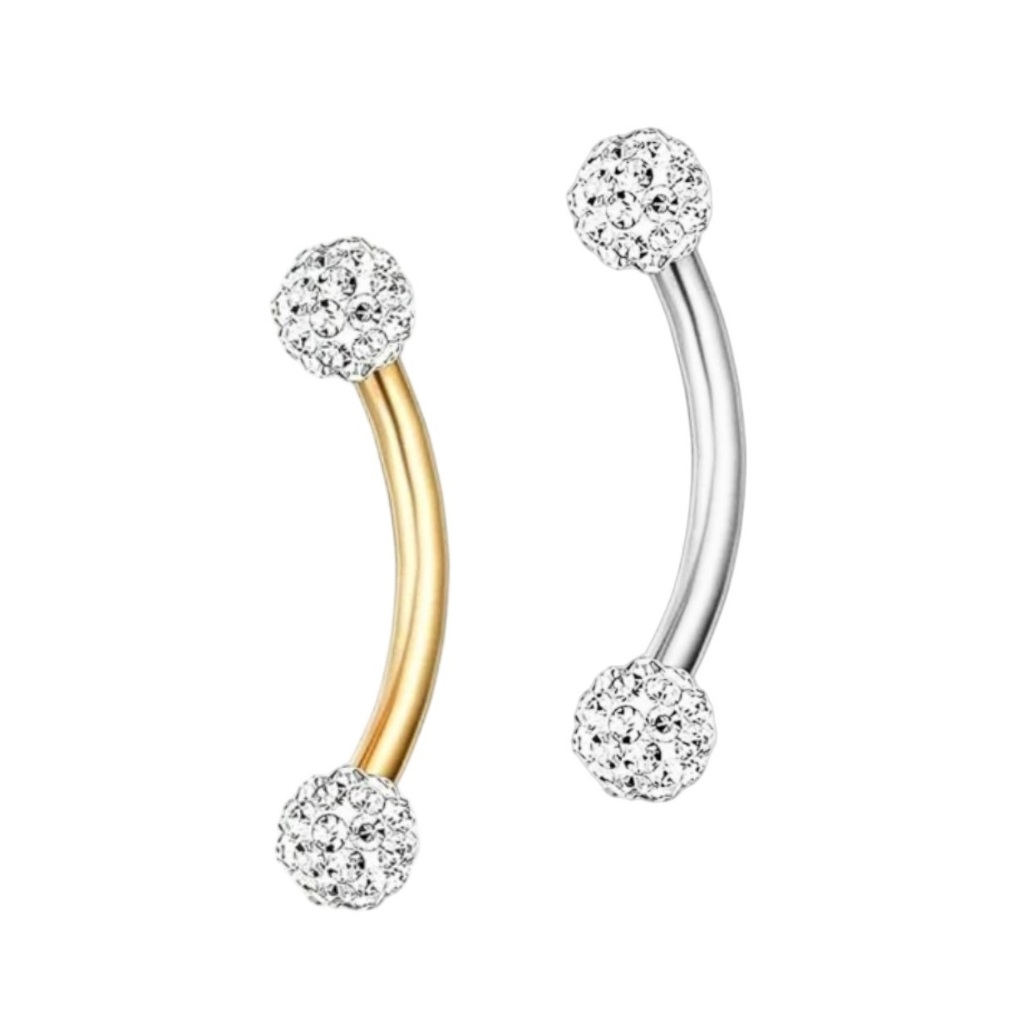 Piercing Microbell Curvo Cravejado Aço Cirúrgico Rosca Externa Sobrancelha Tragus Cartilagem Lábios