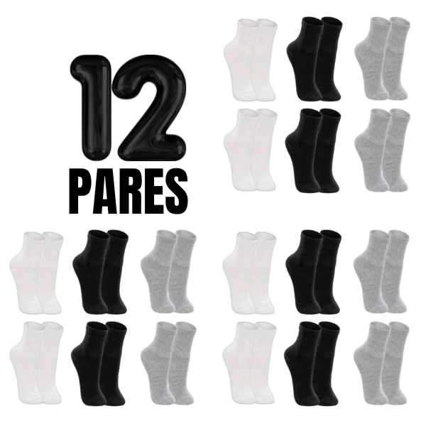 Kit 12 Pares Meias Cano Alto 80% algodão masculina e feminina