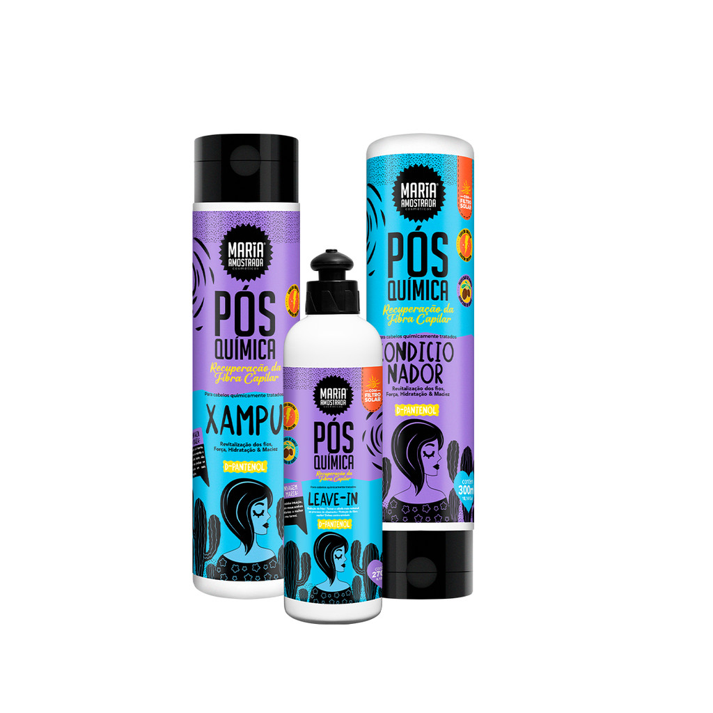 SHAMPOO E CONDICIONADOR + LEAVE IN PÓS QUÍMICA MARIA AMOSTRADA