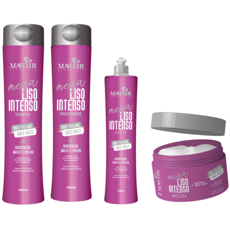 Kit Capilar Shampoo Condicionador Máscara Capilar e Leave-In Mega Liso Mahair Anti-Volume Promoção!