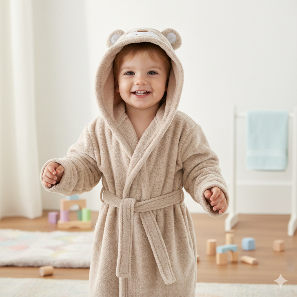 ✨【Novidades】Roupão Infantil Quentinho Com Capuz e Cinto Tecido Plush Antialérgico Menina Menino