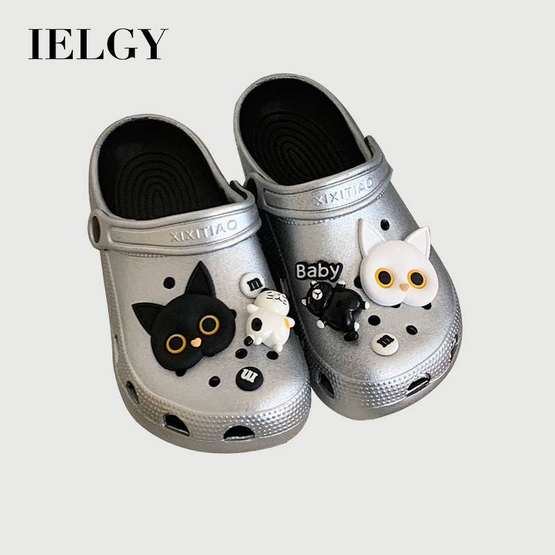 IELGY EVA Doce Legal Preto E Branco Prata Buraco Sapatos Lazer Ao Ar Livre Estilo De Rua Verão Antiderrapante Chinelos