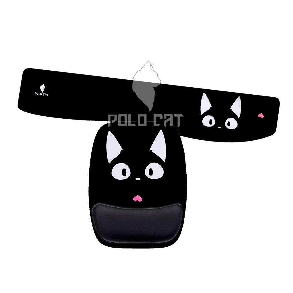 Kit Mouse Pad e Apoio de Teclado Ergonomico Gato Gatinho Preto Bonito