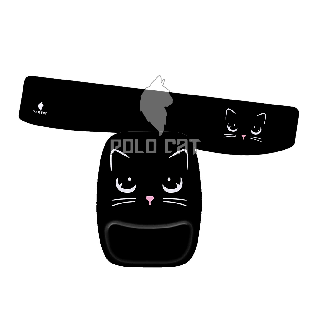 Kit Mouse Pad e Apoio de Teclado Ergonomico Gato Preto