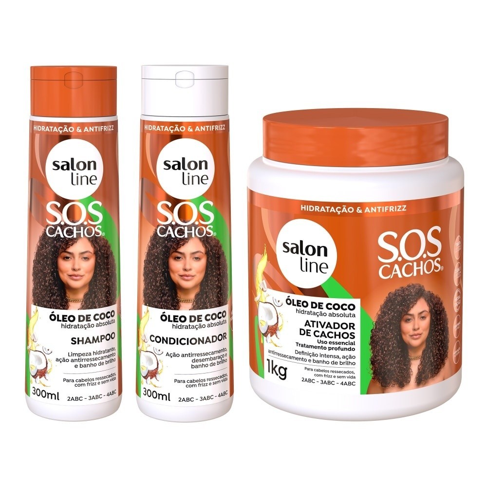 Kit Tratamento Profundo com Shampoo, Condicionador e Ativador de SOS Cachos Coco