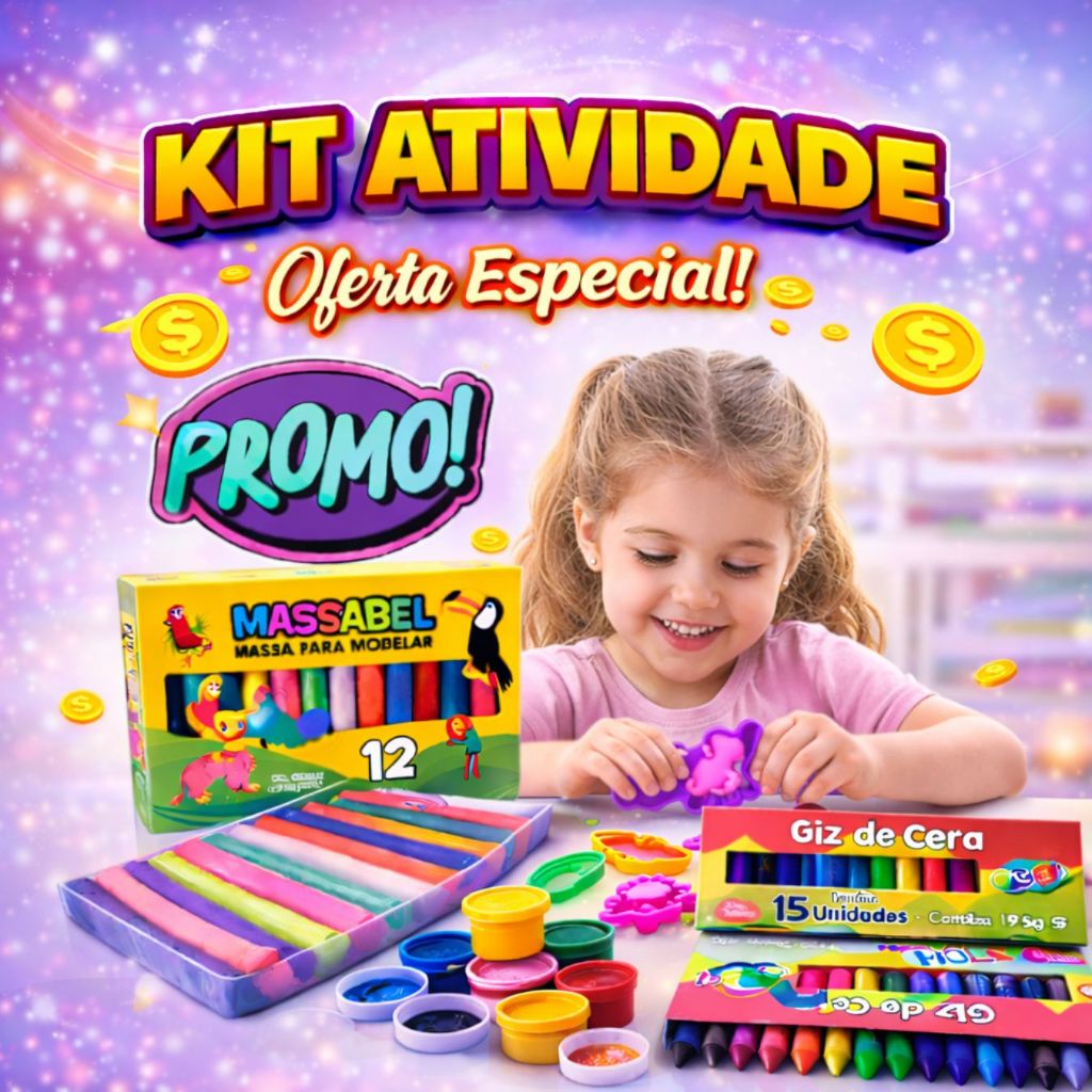 Kit atividades educativas: massinha, guache, giz e cortadores para pintar