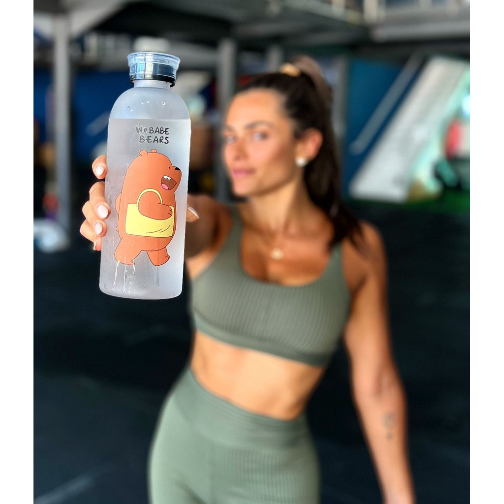 Garrafa grande de 1 litro ursos we bare bears de canudo e tampa que veda