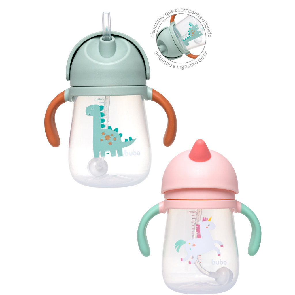 Copo Transição Dino Unicórnio Para Bebe Criança Com Canudo Silicone Treinamento Valvula Buba