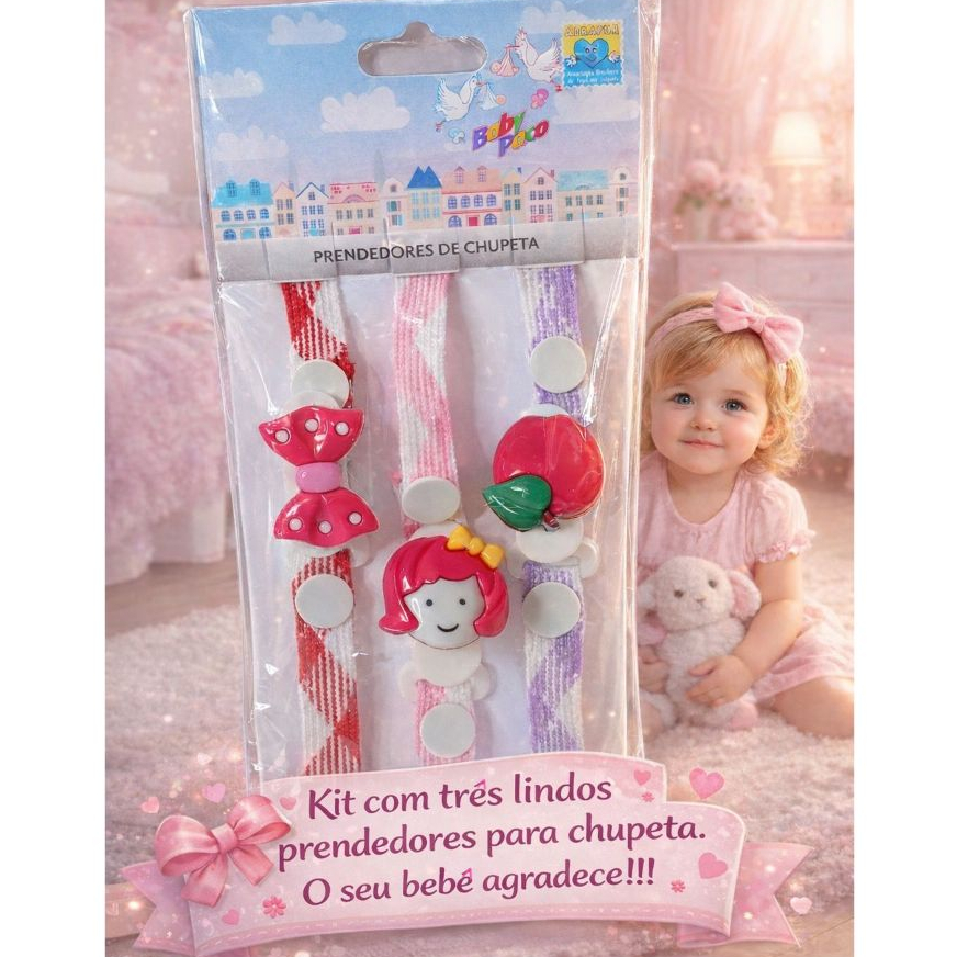 Prendedor De Chupeta Bebê 3 Unidades Ofera