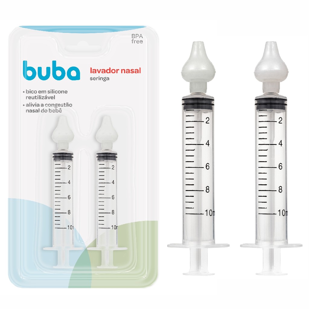 Kit 2 Seringas para Lavagem Nasal Infantil Buba – Bico de Silicone Reutilizável | Higiene Segura e Suave para Bebês