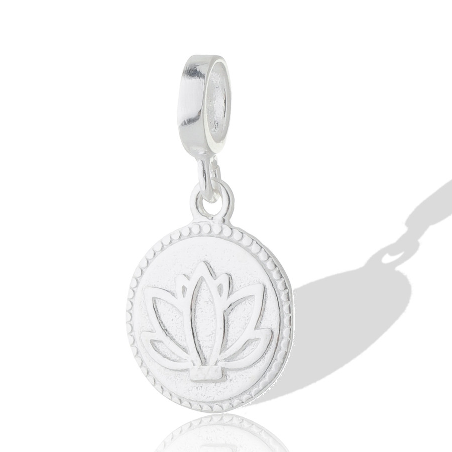 Berloque Charms Pingente Prata Pura Flor Lotus Minimalista