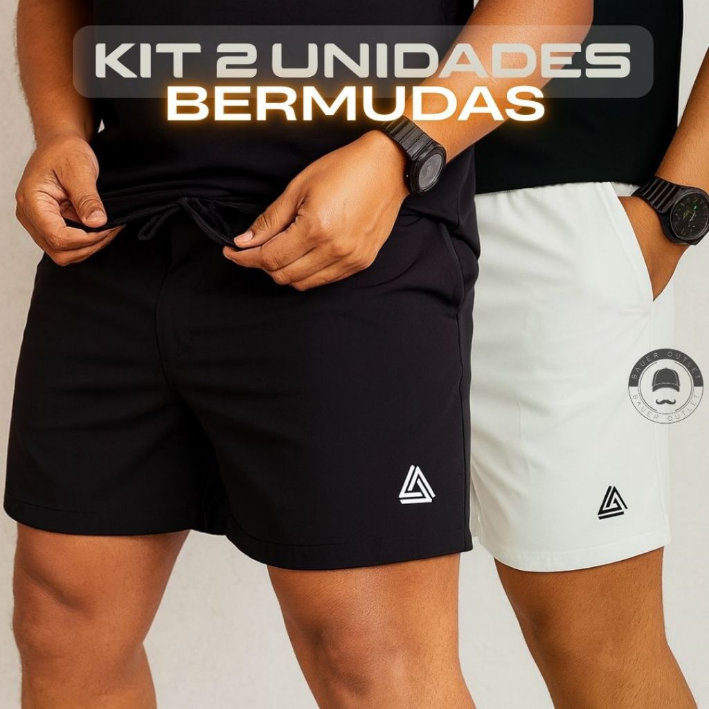 Kit 2 Bermudas Masculinas Elastano ORIGINAL Secagem Rápida, Bolsos Laterais Conforto Casual P ao GG