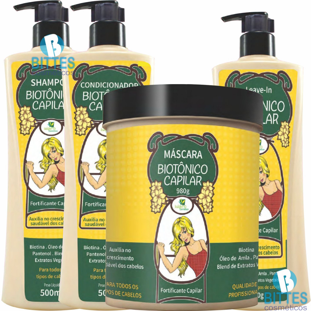 KIT BIOTÔNICO CAPILAR HÁBITO COSMÉTICOS FORTIFICANTE E CRESCIMENTO DOS FIOS
