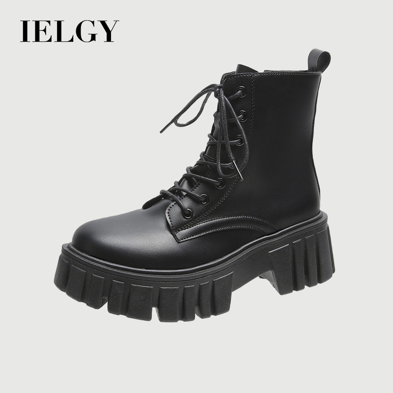 Botas martin Femininas IELGY Estilo Coreano De Couro Confortável Com Sola Grossa E Cadarço