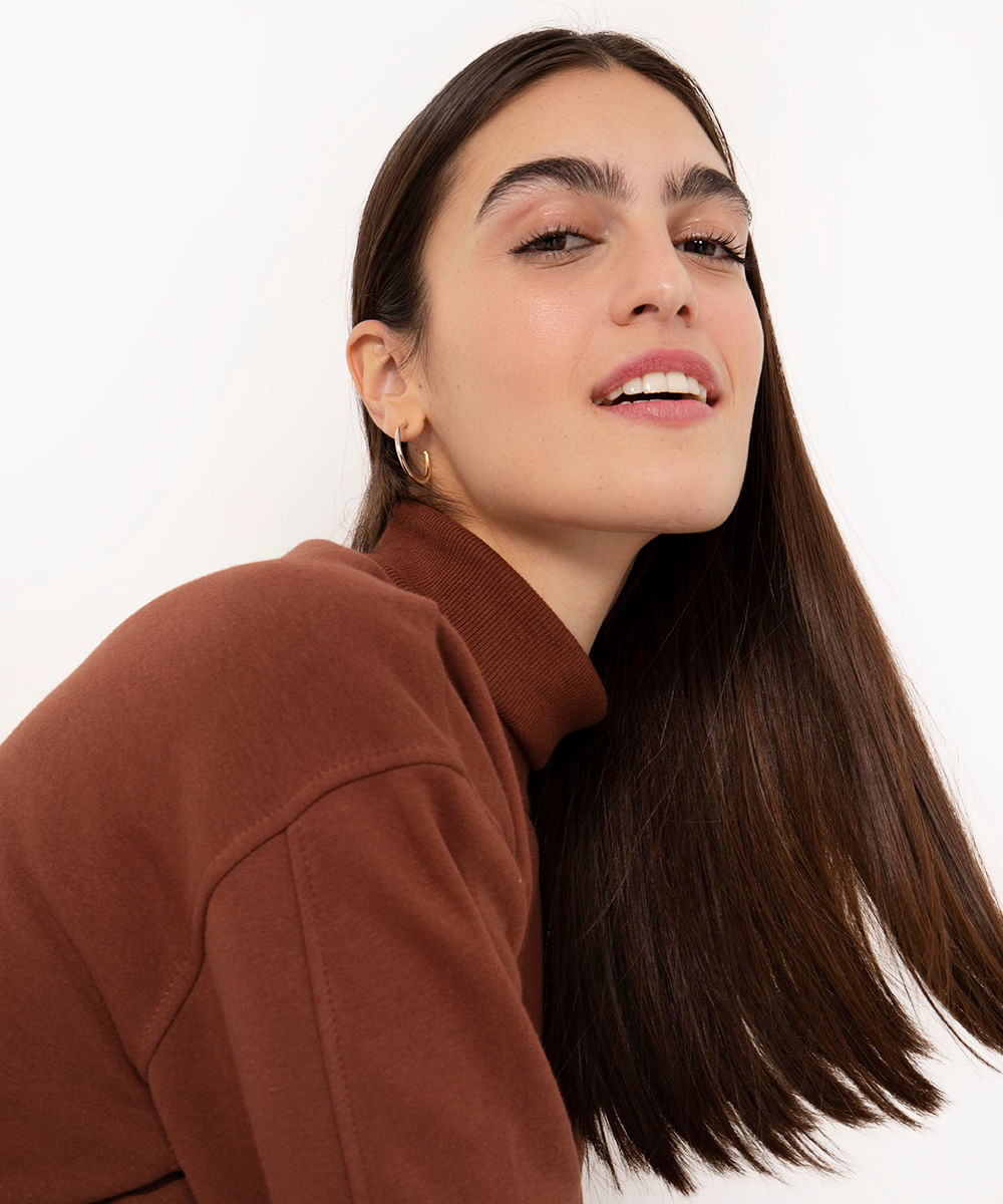 blusão de moletom feminino gola alta marrom