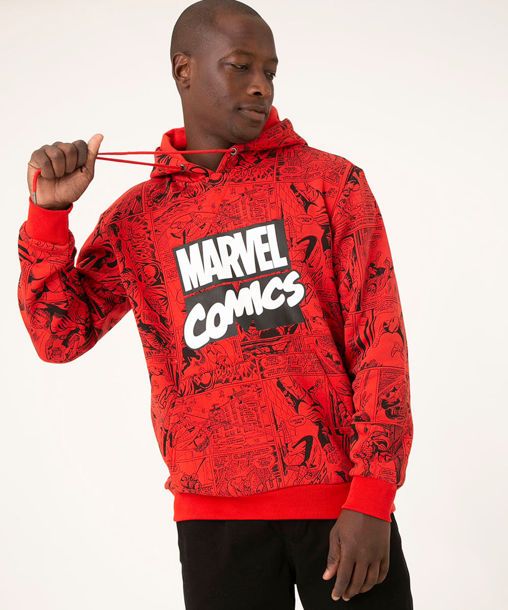 blusão de moletom com capuz marvel vermelho