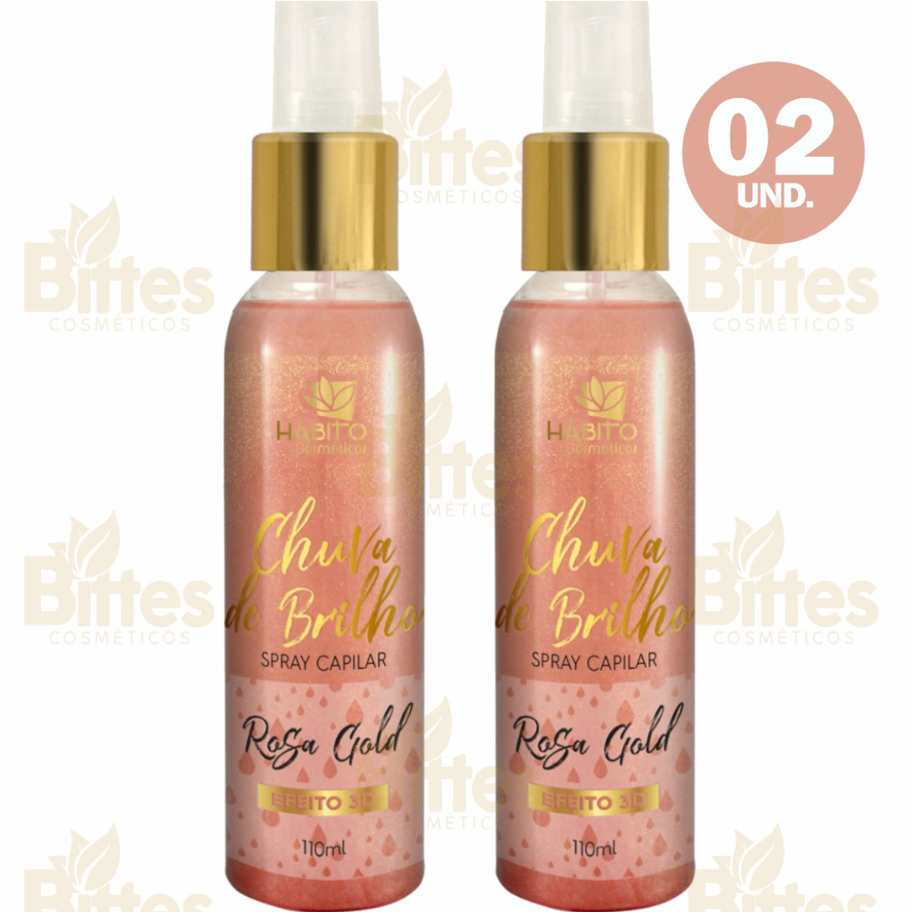 KIT 2 SPRAY ROSA GOLD HÁBITO COSMÉTICOS CHUVA DE BRILHO FINALIZADOR PERFUME CAPILAR