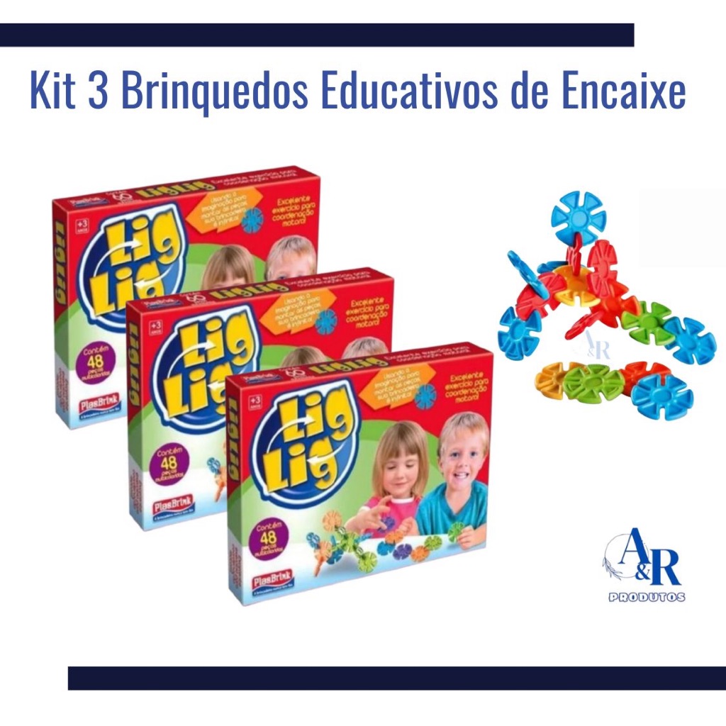 Brinquedo Educativo de Encaixe Lig Lig 48 Peças Didático e Educativo