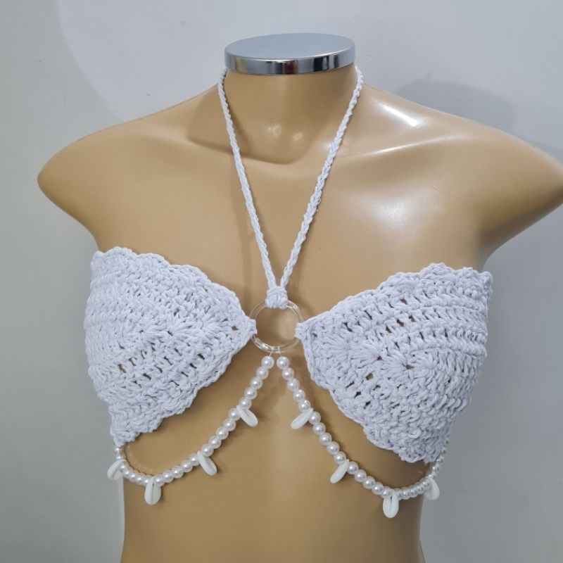 Top Cropped Crochê Pérolas e Búzios.