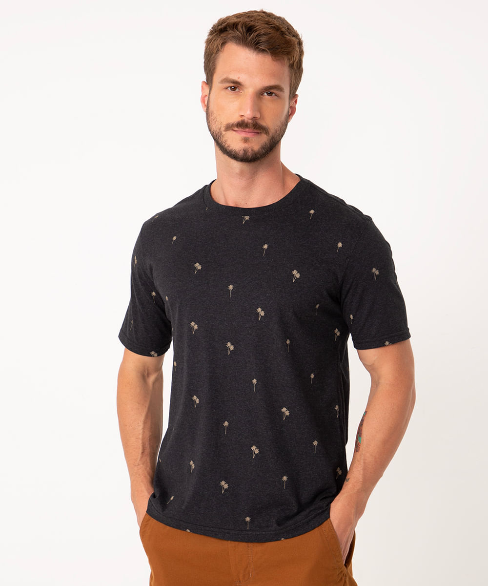camiseta de algodão manga curta coqueiros cinza