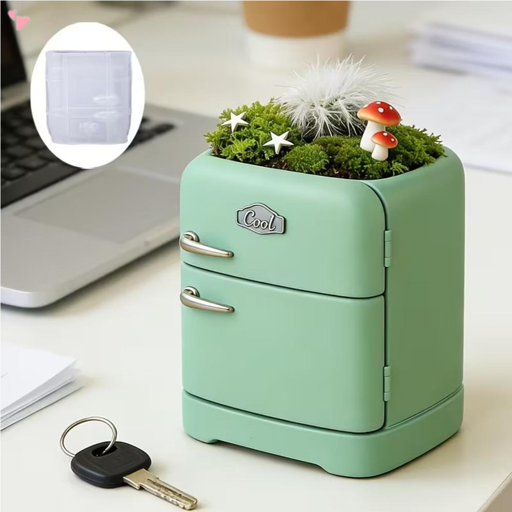 Molde De Silicone Retrô Para Mini Geladeira 3D , Lindo Plantador Suculento De E Fundição De Suporte De Caneta Concreto D